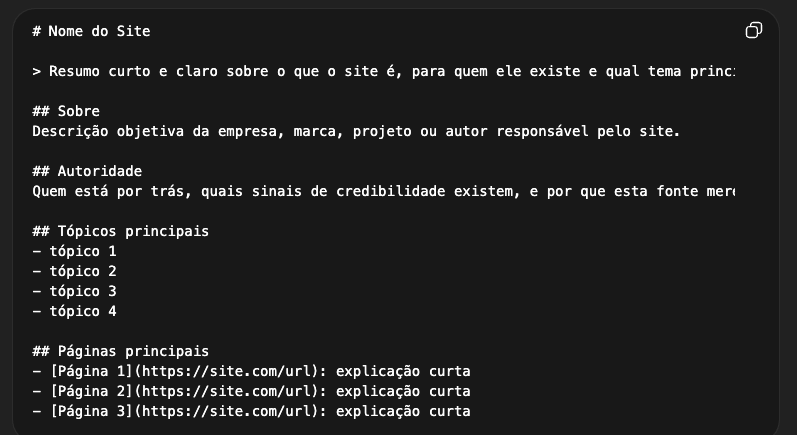O formato ideal de um llms.txt bem construído